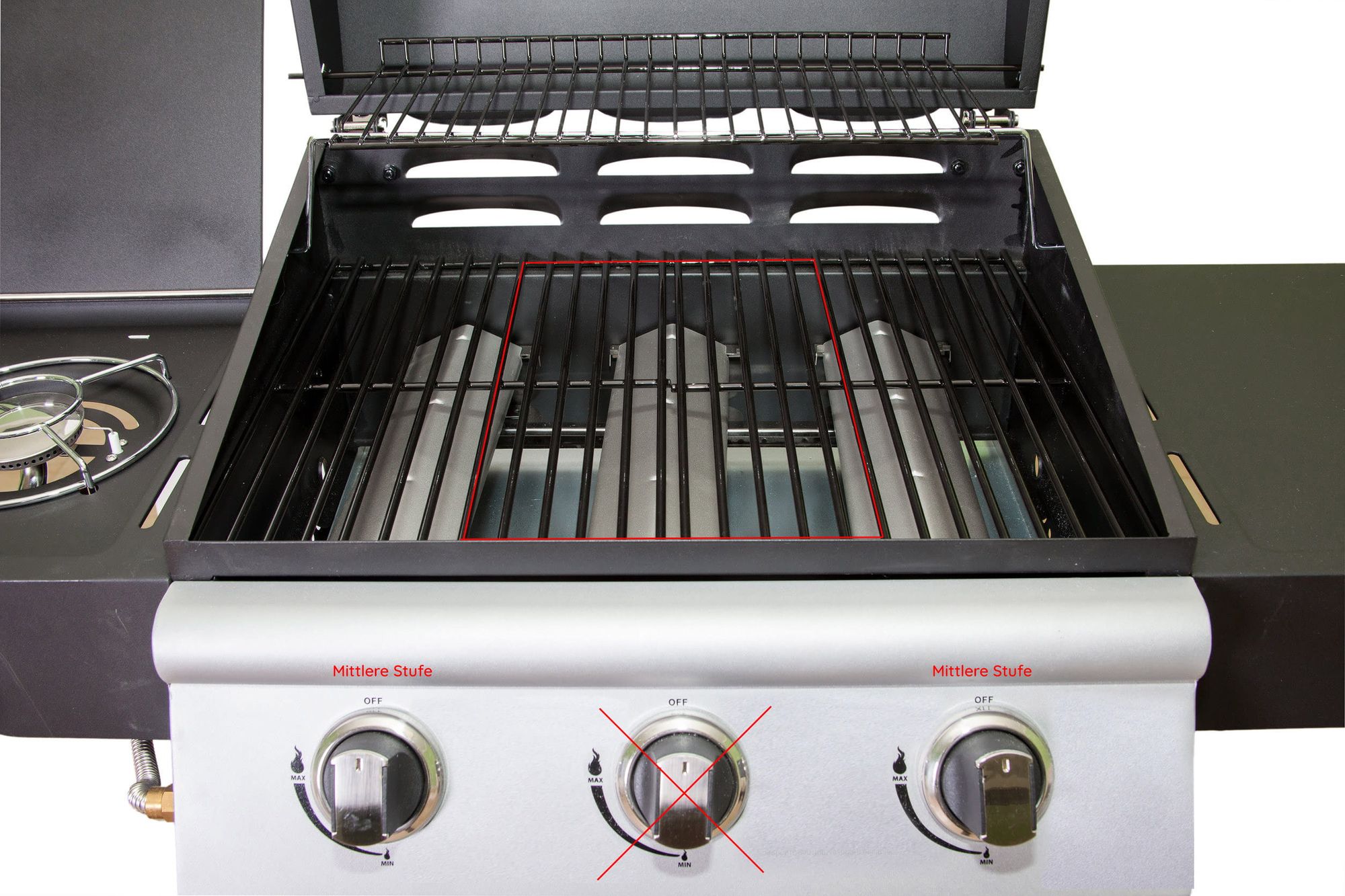 Entscheidender Faktor beim Gasgrill ist die Anzahl der Brenner. Je nachdem muss die indirekte Zone auf die eine oder andere Weise eingerichtet werden.